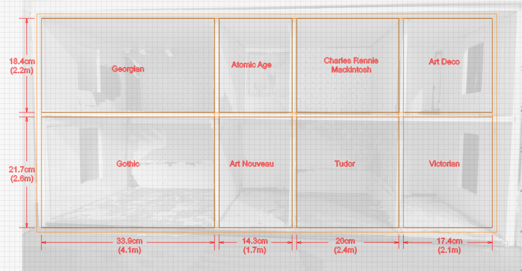Next decision is which room to start in. I’ve picked one of the larger/taller rooms for the Gothic theme with a side-window so I can convert to a gothic arched window without it being visible from the front of the house (which will have entirely Georgian windows). Gothic may be my first room!